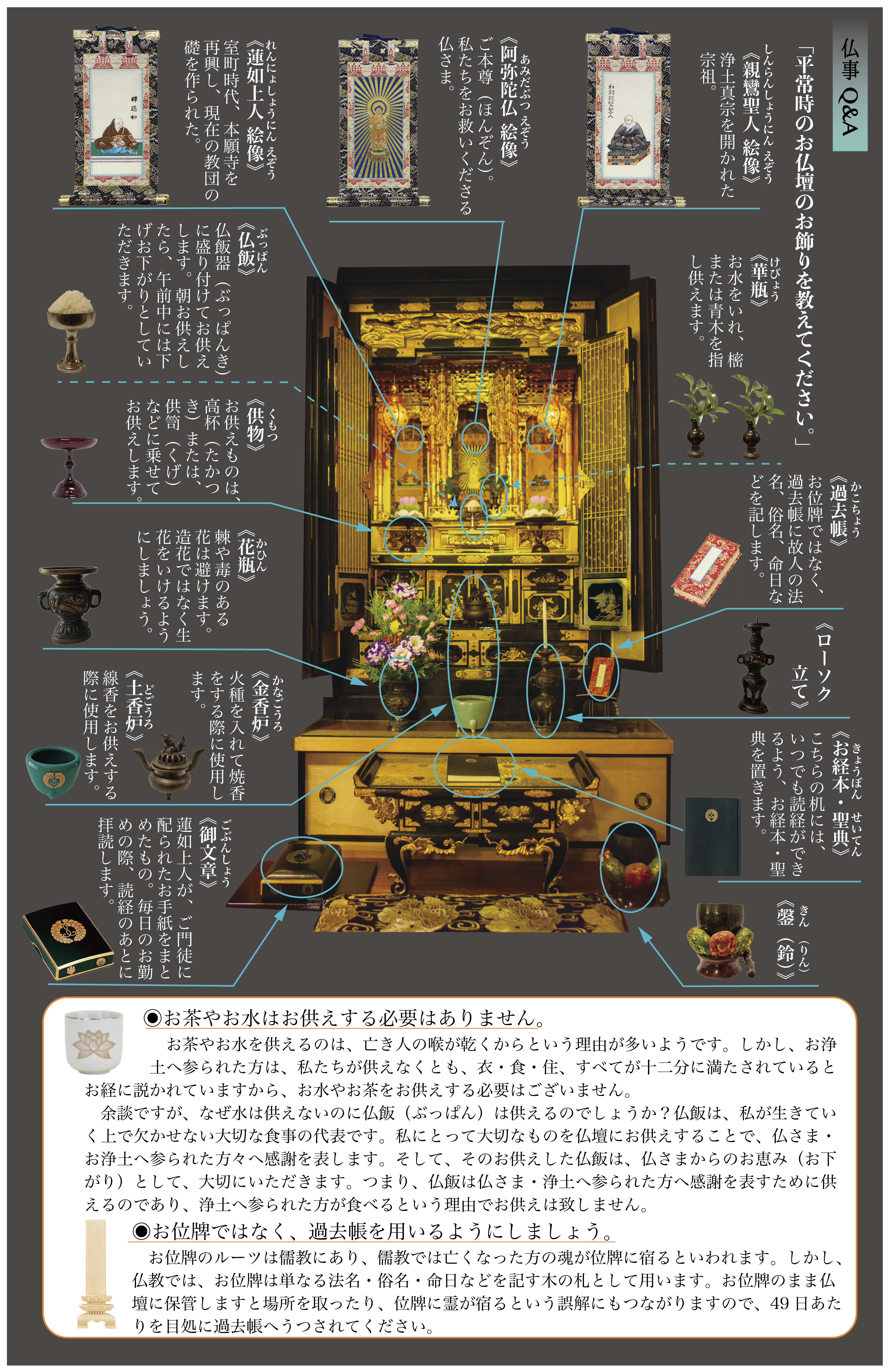 こちらを参考にしていただきながら、ご自宅の仏壇のサイズに合わせて、綺麗にお飾りください。