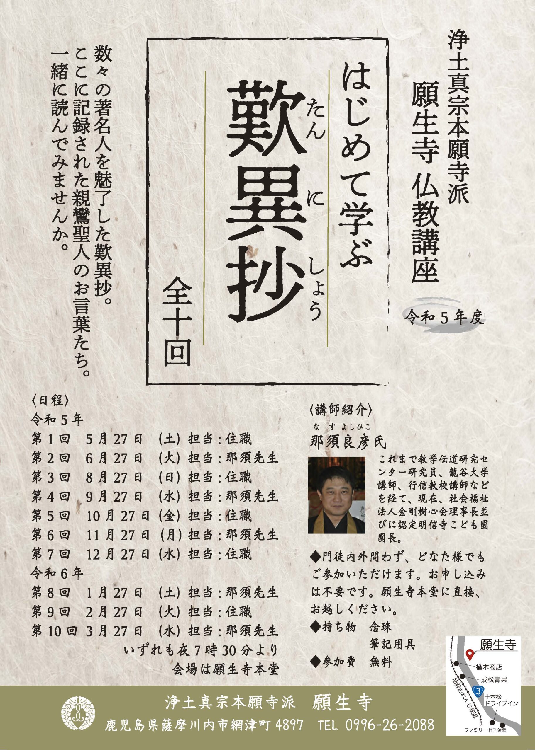3. 令和5年度 仏教講座「はじめて学ぶ歎異抄」のご案内