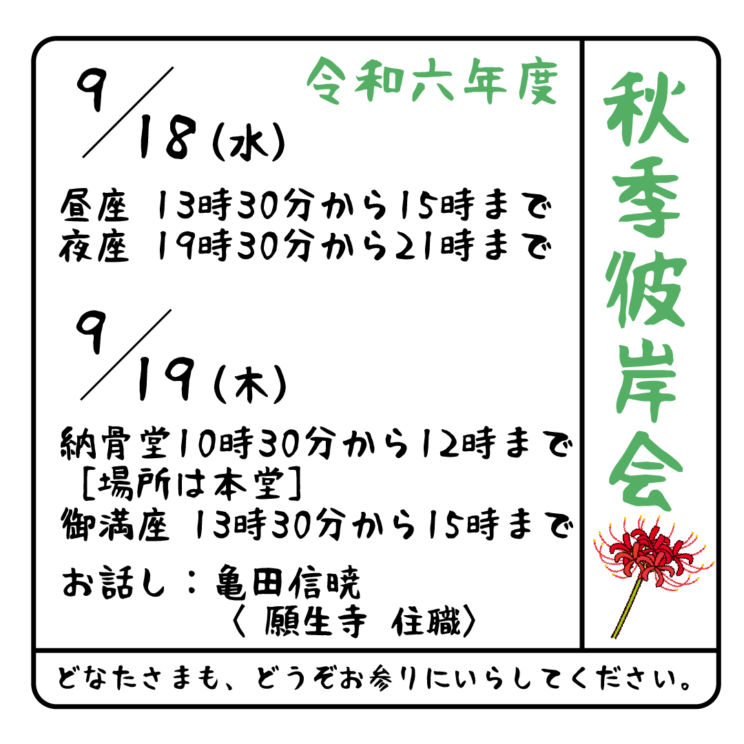 【行事案内】9月18日から9月19日 秋の彼岸会