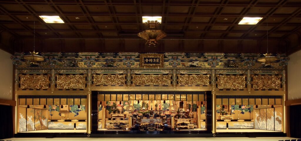 ⬇️西本願寺の内陣 息をのむほど綺麗なお荘厳です。