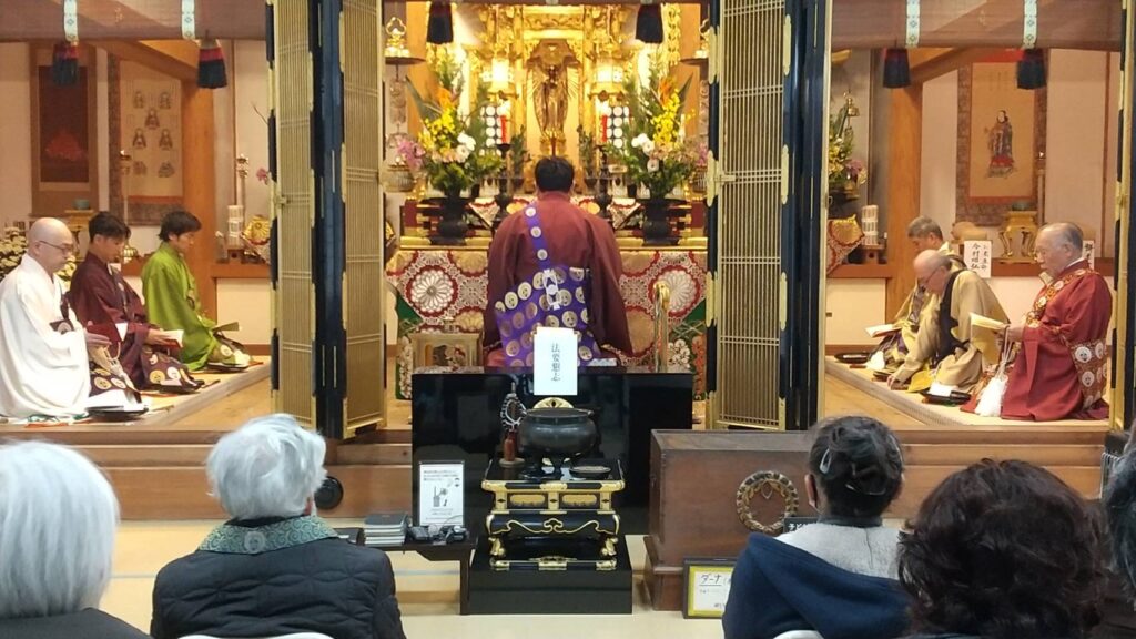 ご縁のある七ヶ寺のご寺院さまにご出勤を賜り、厳かにお勤めが勤まったあと、愛媛県越智郡・太平寺のご住職である深水健司先生よりご法話を頂戴しました。