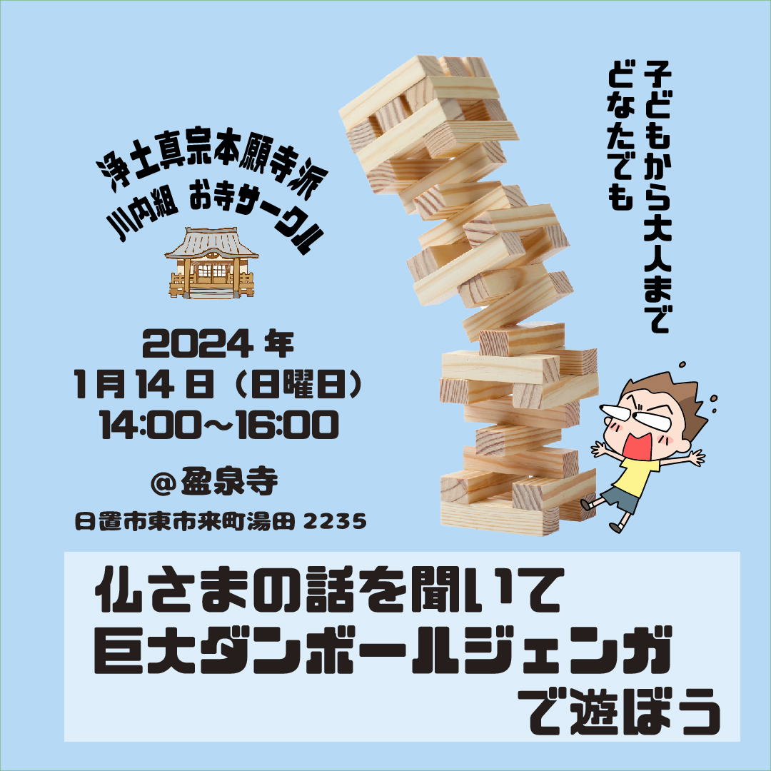 令和6年1月は、「仏さまのお話を聞いて、巨大ダンボールジェンガで遊ぼう‼️」です。