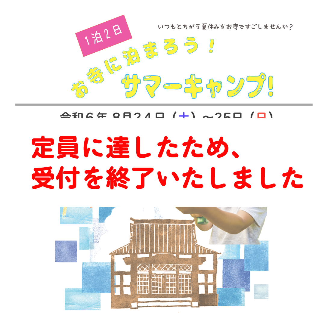 3. 【お知らせ】8月24日から25日 お寺に泊まろう!サマーキャンプ 定員に達しました🙏