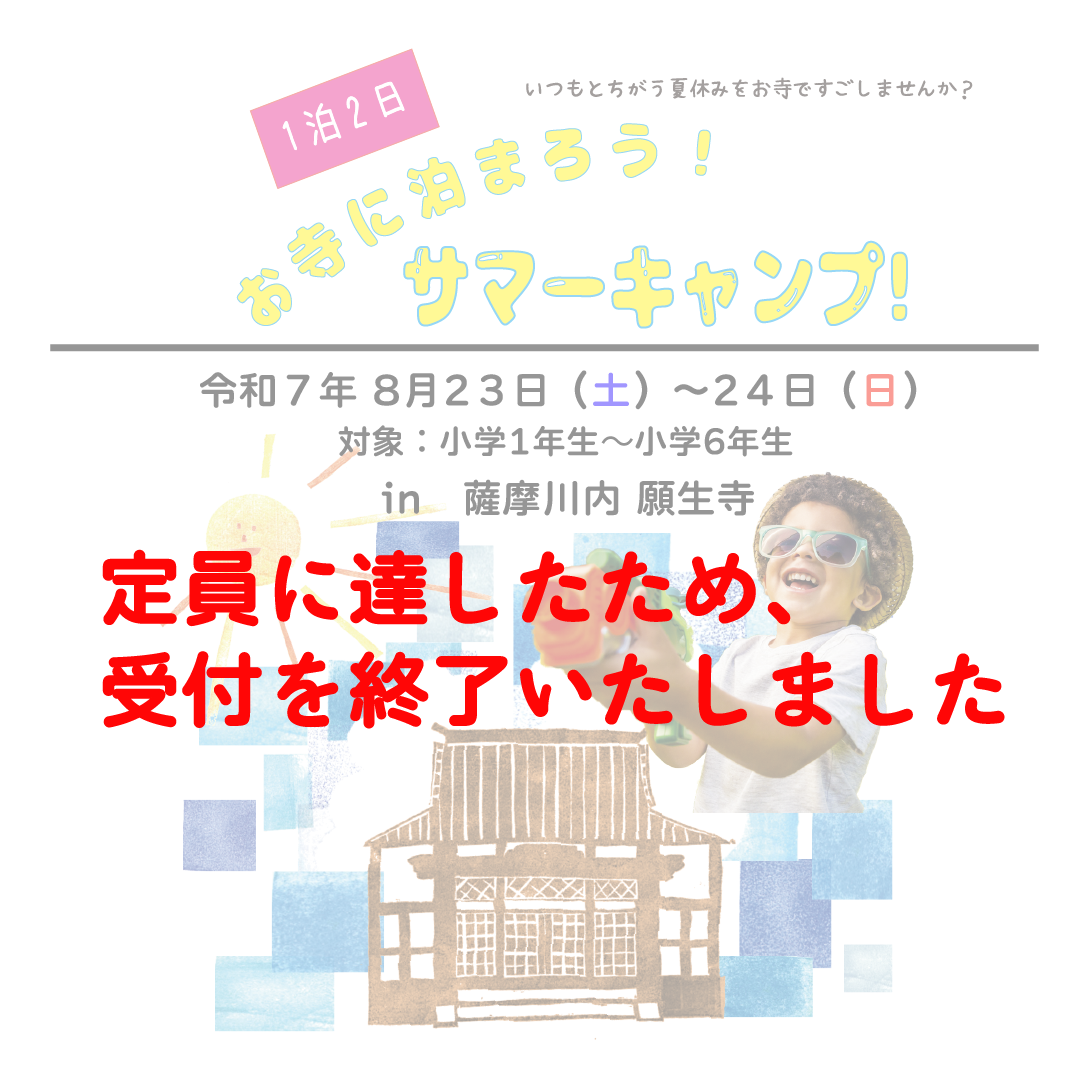 【お知らせ】8月23日(土)から24日(日) 令和7年度お寺に泊まろう!サマーキャンプ 定員に達しました🙏