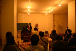 2月11日の夜に山形屋川内店の隣にあります、レンタルスペース・リブンプラスにて仏教トークライブ「ワクワクする仏教 明日を生きるのがちょっと楽しくなる話」を開催しました。